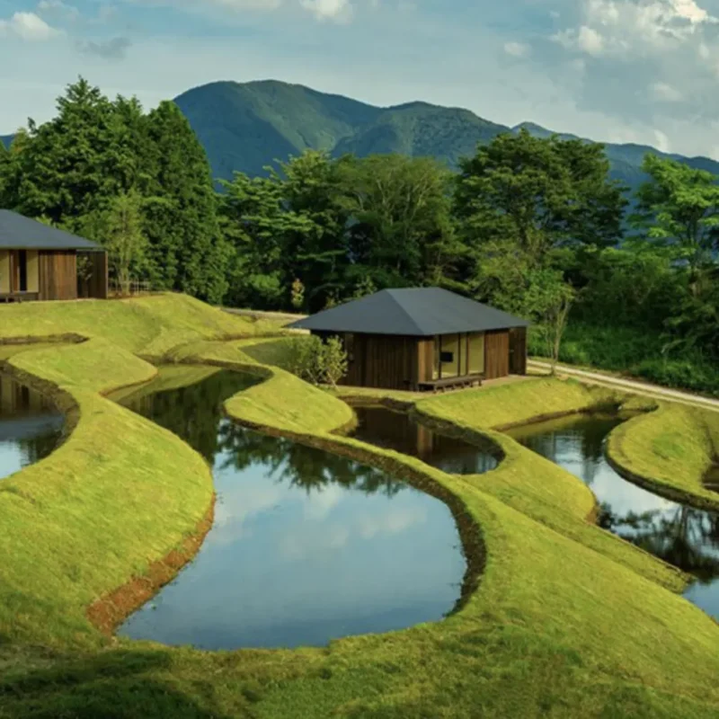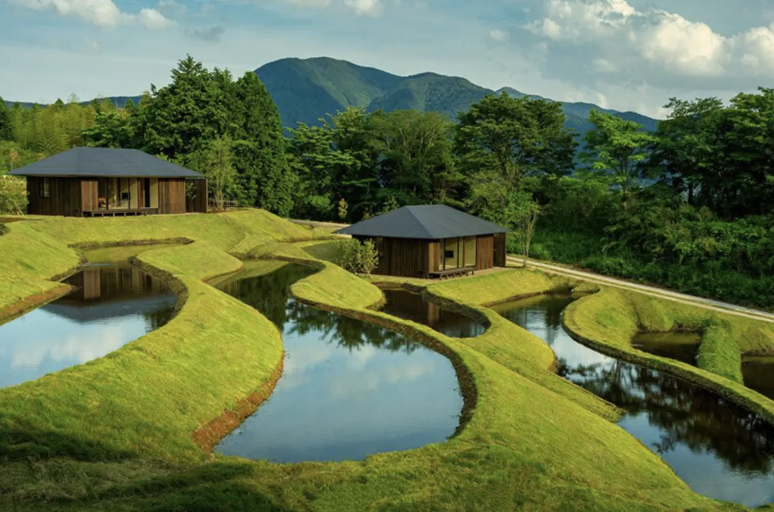 这里是日本的大分县,隈研吾把他设计的温泉旅馆放在如诗如画的山水之间,也给这片以梯田闻名的土地打上了一个新标签——「吾」选之地,不知道又会有多少人悄悄在心愿清单上加上一笔。