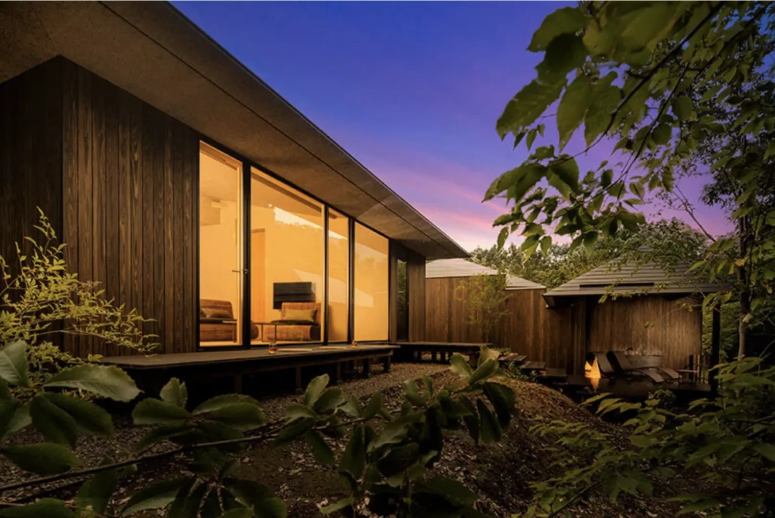 整活大师隈研吾这次亲自操刀给日本酒店巨头星野集团设计了这家「KAI Yufuin」。「KAI」(「界」)是星野旗下专注打造日式传统温泉旅馆的品牌,相比于奢华的外观和硬件,这个系列更注重选址和环境,因为依托温泉而生的日式汤屋精髓就在于温泉水本身的质量,以及是否能够提供给人拥抱自然、与之交融的界面。